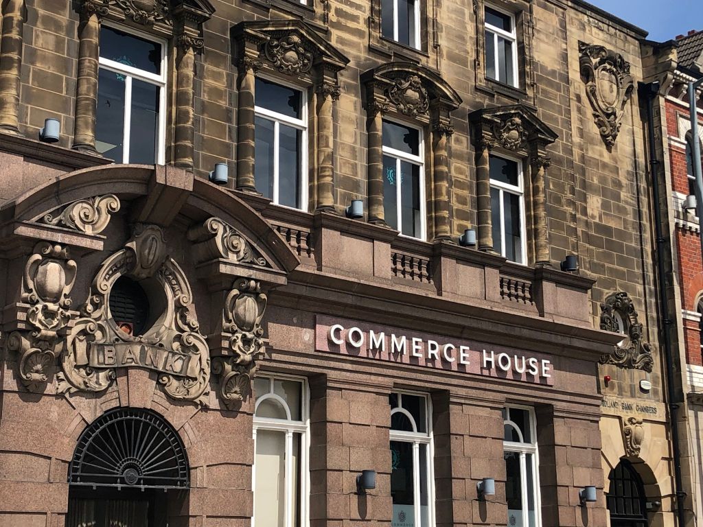 This iconic former bank sits on the corner of Queens Square and Cleveland Street, in the older part of Middlesbrough just north of the Railway Station.